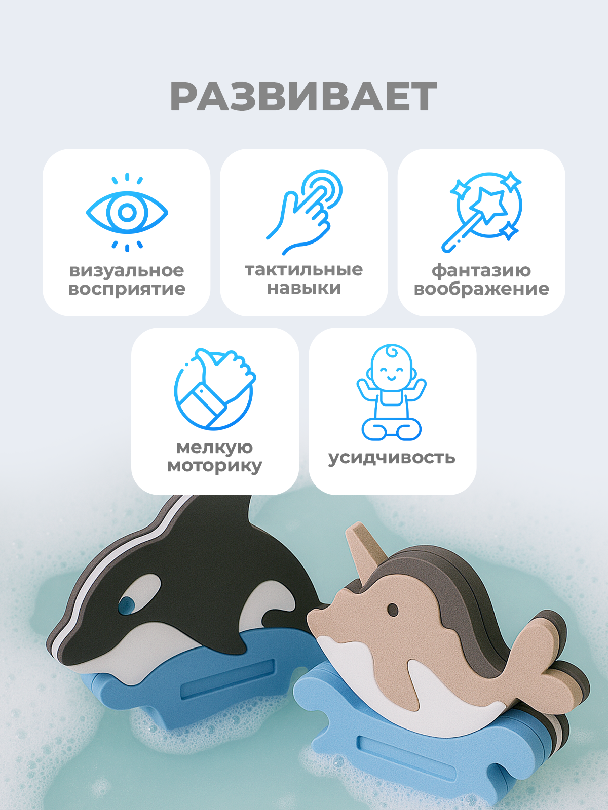 Познавательная игра – знакомит ребёнка с морскими животными: касатка, нарвал.