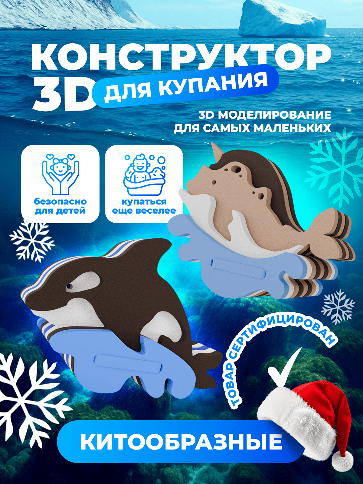 "3D конструктор "Китообразные" — соберите величественных касатку и нарвала, чтобы погрузиться в подводный мир, развивая логику и воображение!