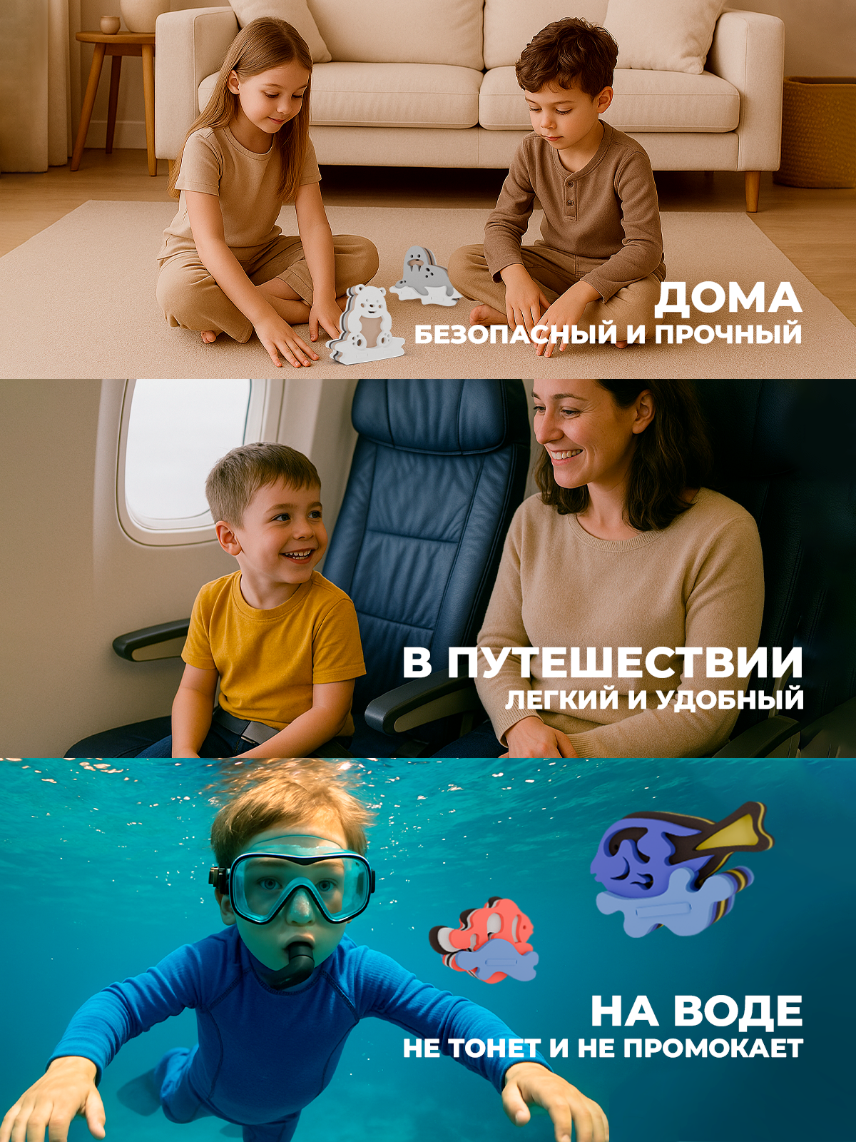 Безопасный материал – мягкий и прочный ЭВА-пластик без острых углов.