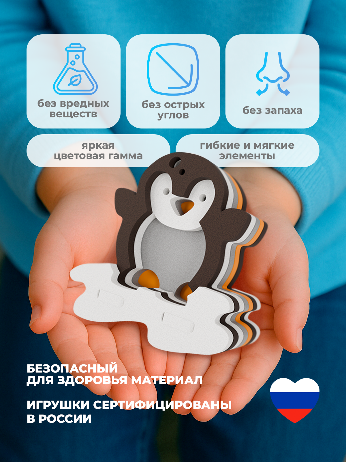 Безопасный материал – мягкий и прочный ЭВА-пластик без острых углов.
