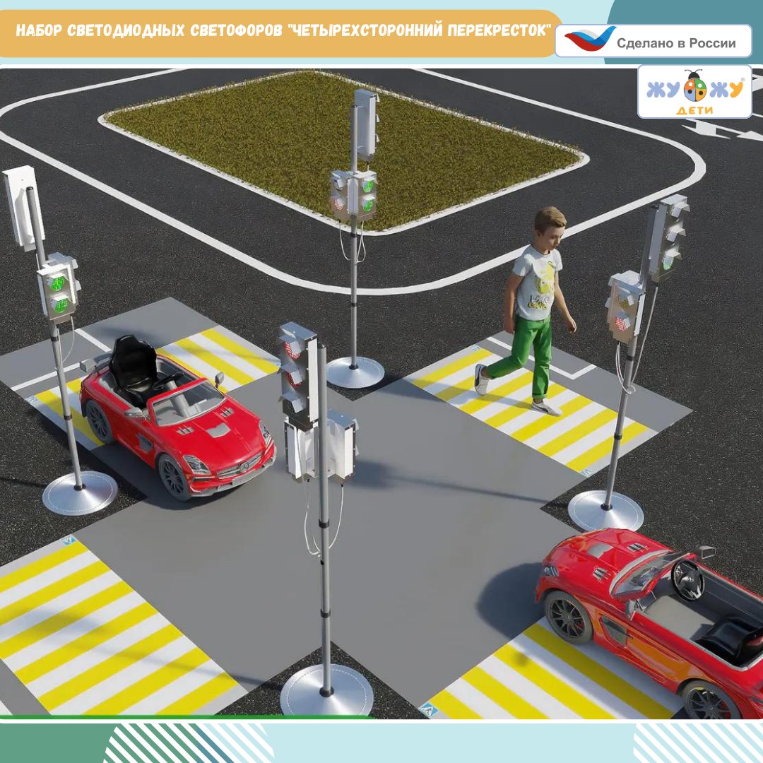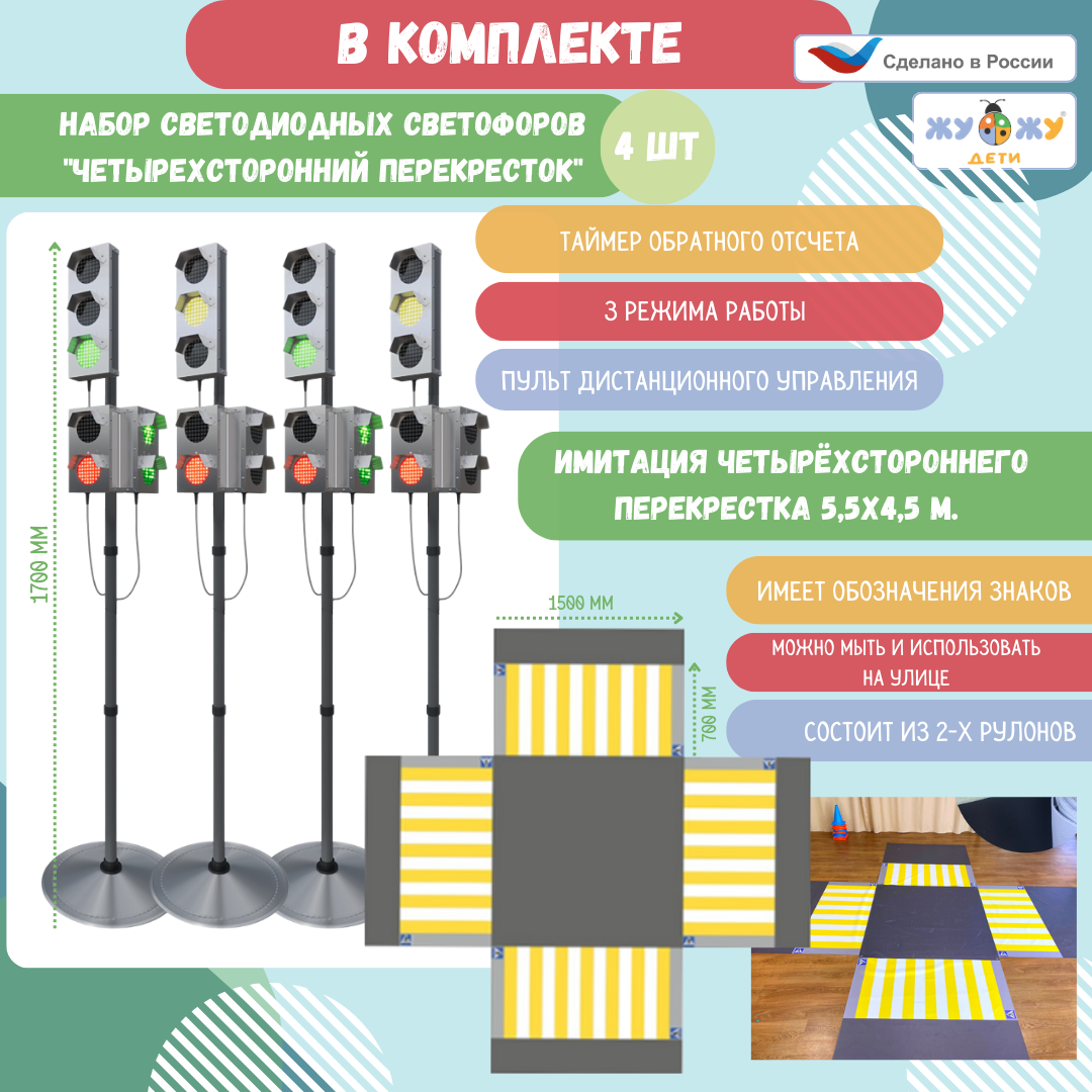 1.Набор светодиодных светофоров "Четырехсторонний перекресток" мобильный.