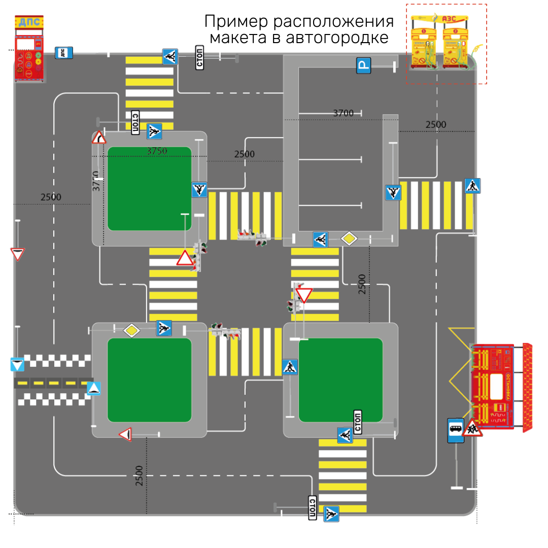 | 2. Имитация четырехстороннего перекрестка 5500 х 4500 мм | 1 шт. |