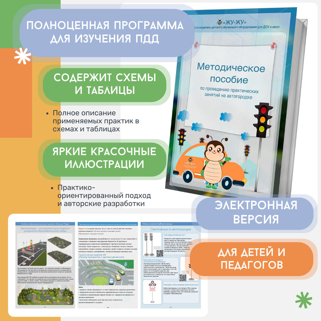 Пособие разработано именно под автогородки ЖУ-ЖУ. Здесь вы найдете множество увлекательных рекомендаций по проведению занятий, описание каждого элемента автогородка и много другое!