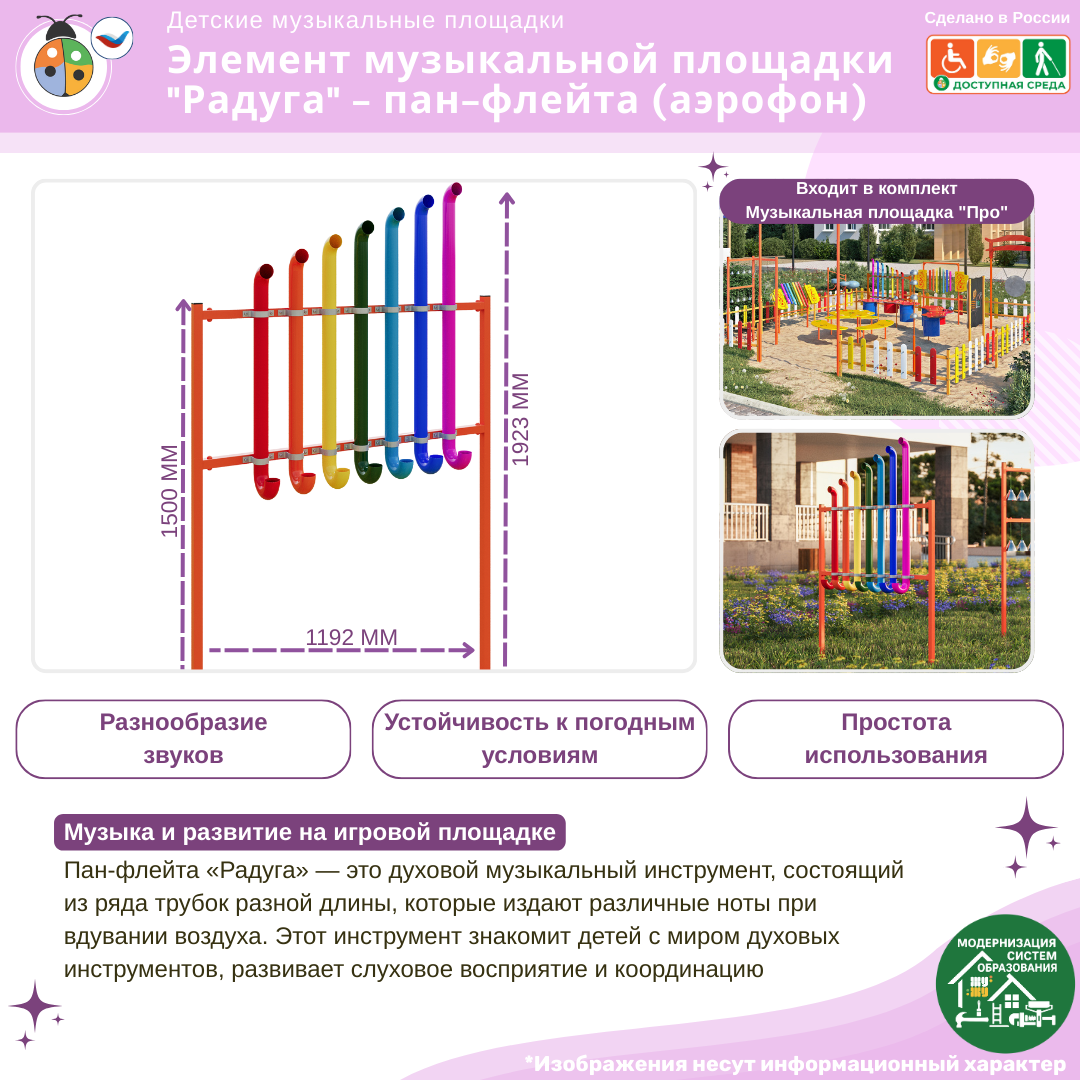 Уличные площадки (метеостанции, музыкальные, патриотические площадки) мы доставляем бесплатно при сумме договора от 150 000 рублей до адреса Покупателя по всей РФ. Остальные индивидуальные комплекты доставляем за счет Покупателя, включая в стоимость договора.