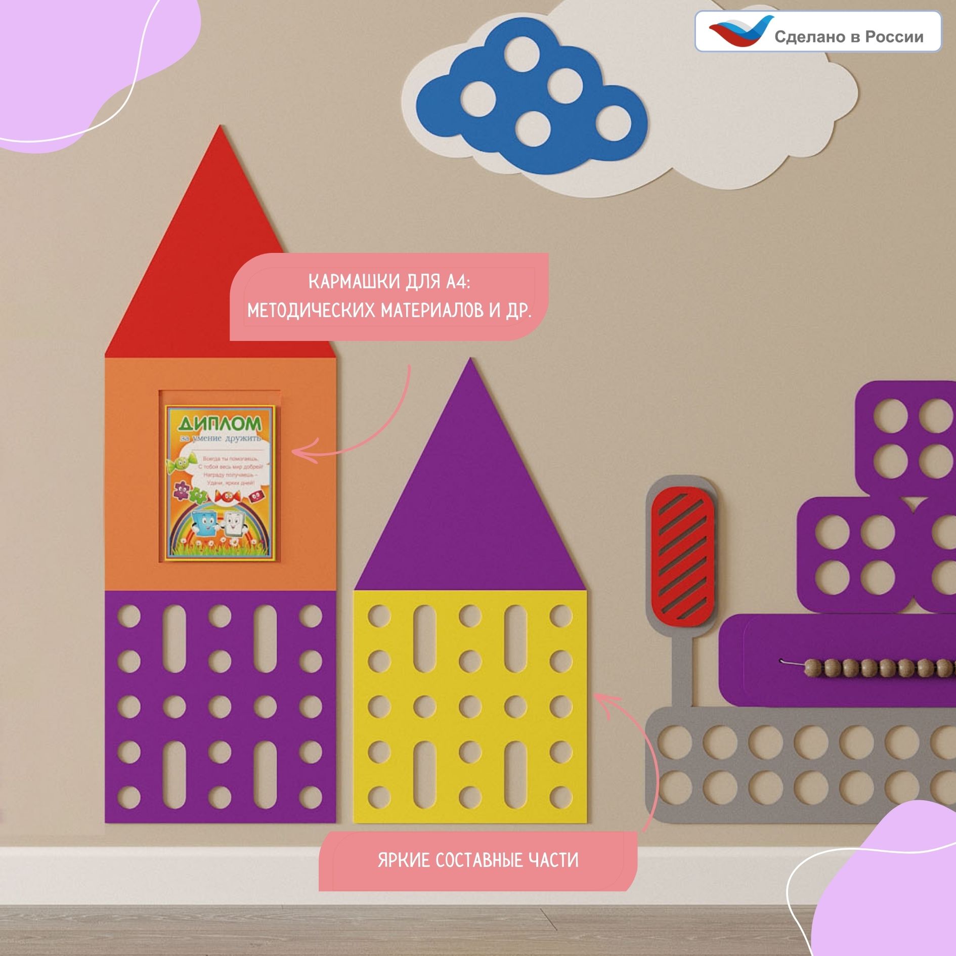 Панель предназначена для зонирования пространства и оформления групп в ДОО или специализированных детских учреждениях.