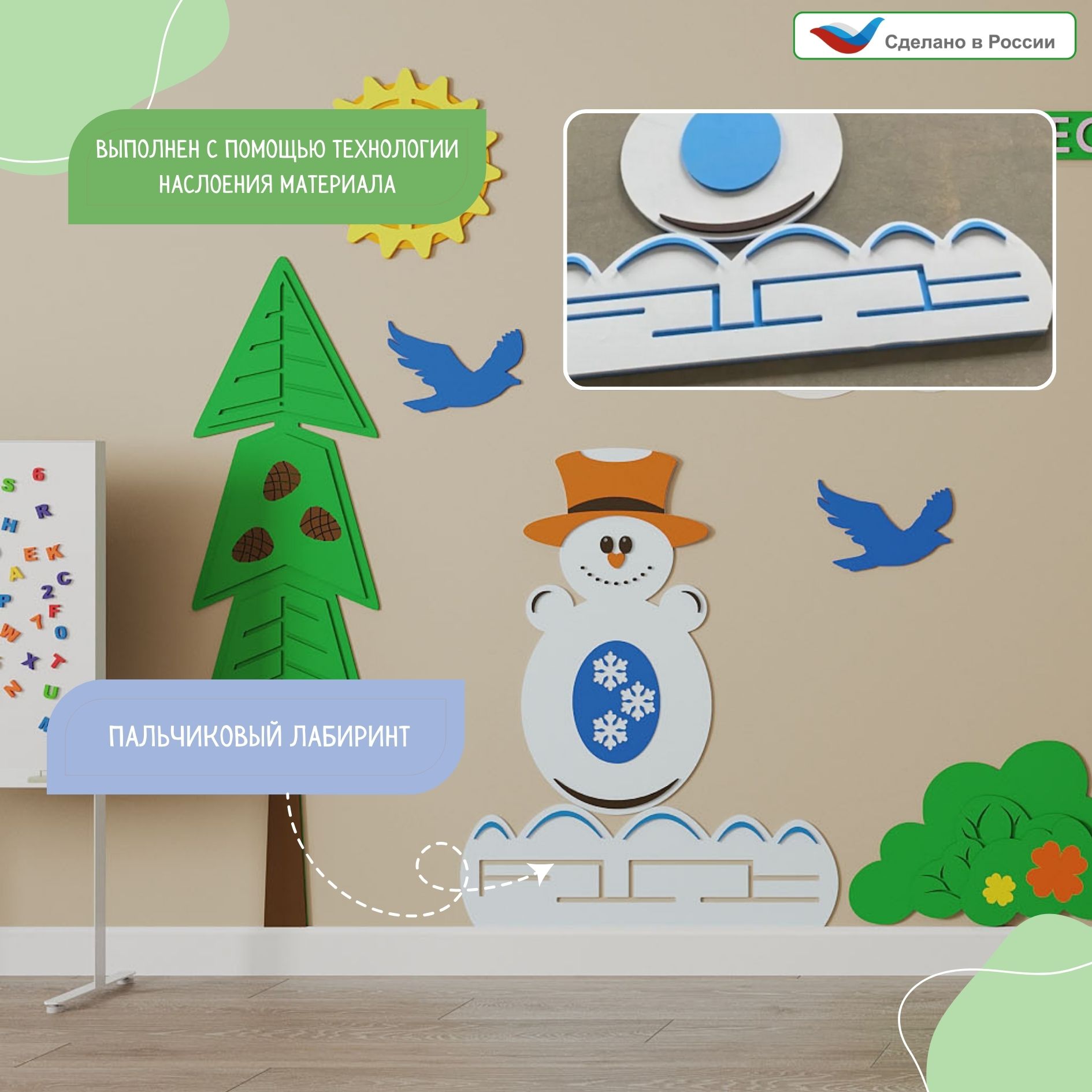 Элемент настенной панели "Снеговик на снегу", мягкий полимер