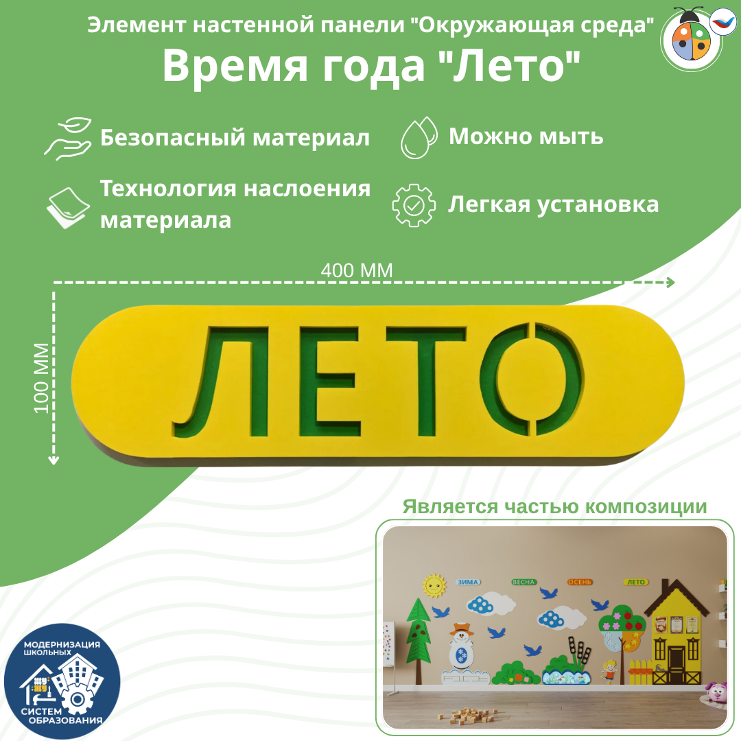 Панель предназначена для зонирования пространства и оформления групп в ДОО или специализированных детских учреждениях.