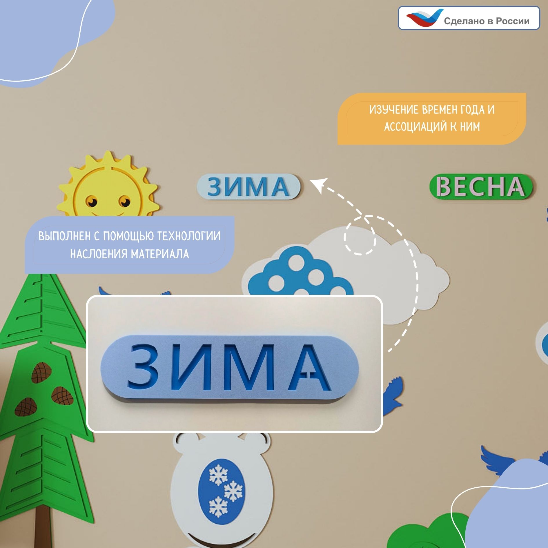 Элемент настенной панели табличка "Зима", мягкий полимер