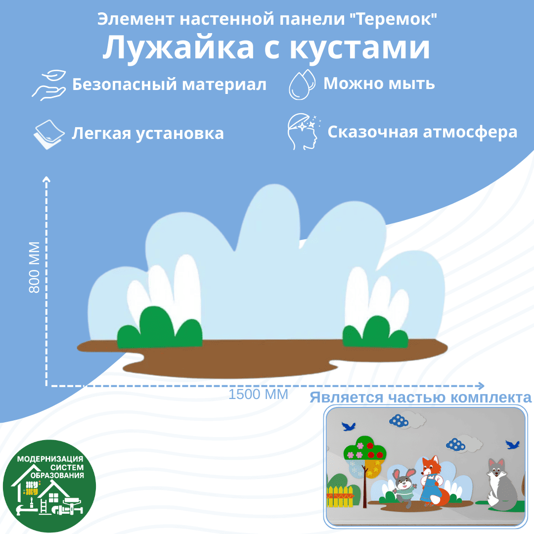 Элемент настенной панели "Теремок" Лужайка с кустами (Фон для зайца и лисы)