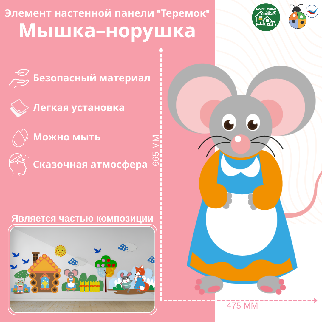 Элемент настенной панели "Теремок" Мышка-норушка