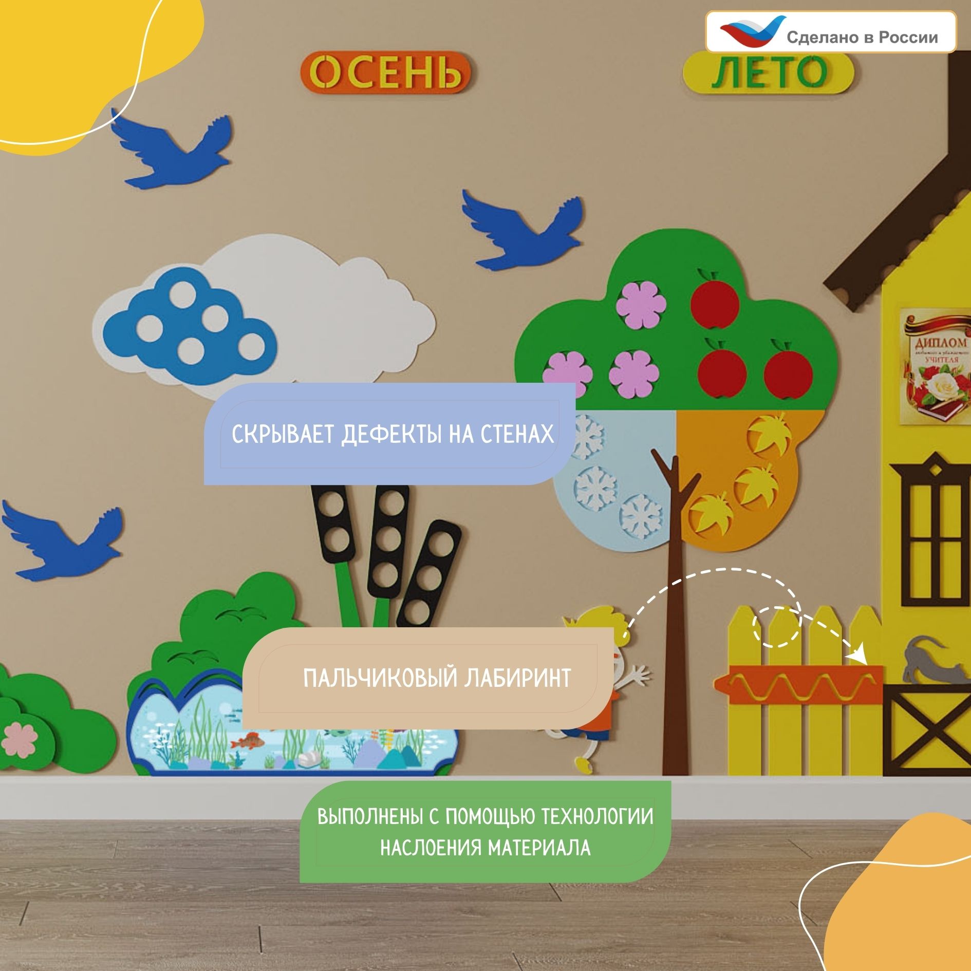 Панель предназначена для зонирования пространства и оформления групп в ДОО или специализированных детских учреждениях.