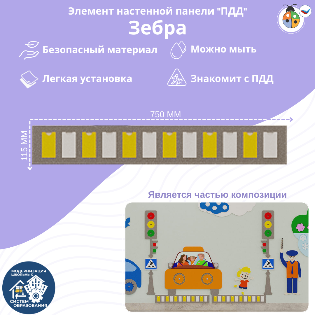 Элемент настенной панели "Зебра ПДД", мягкий полимер