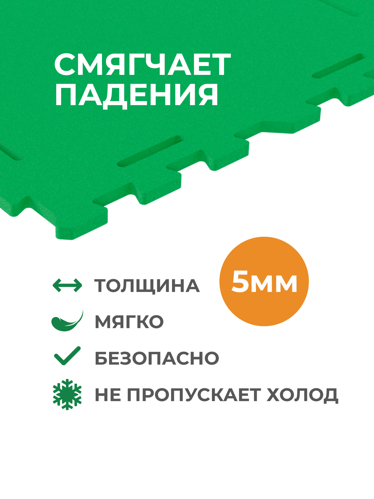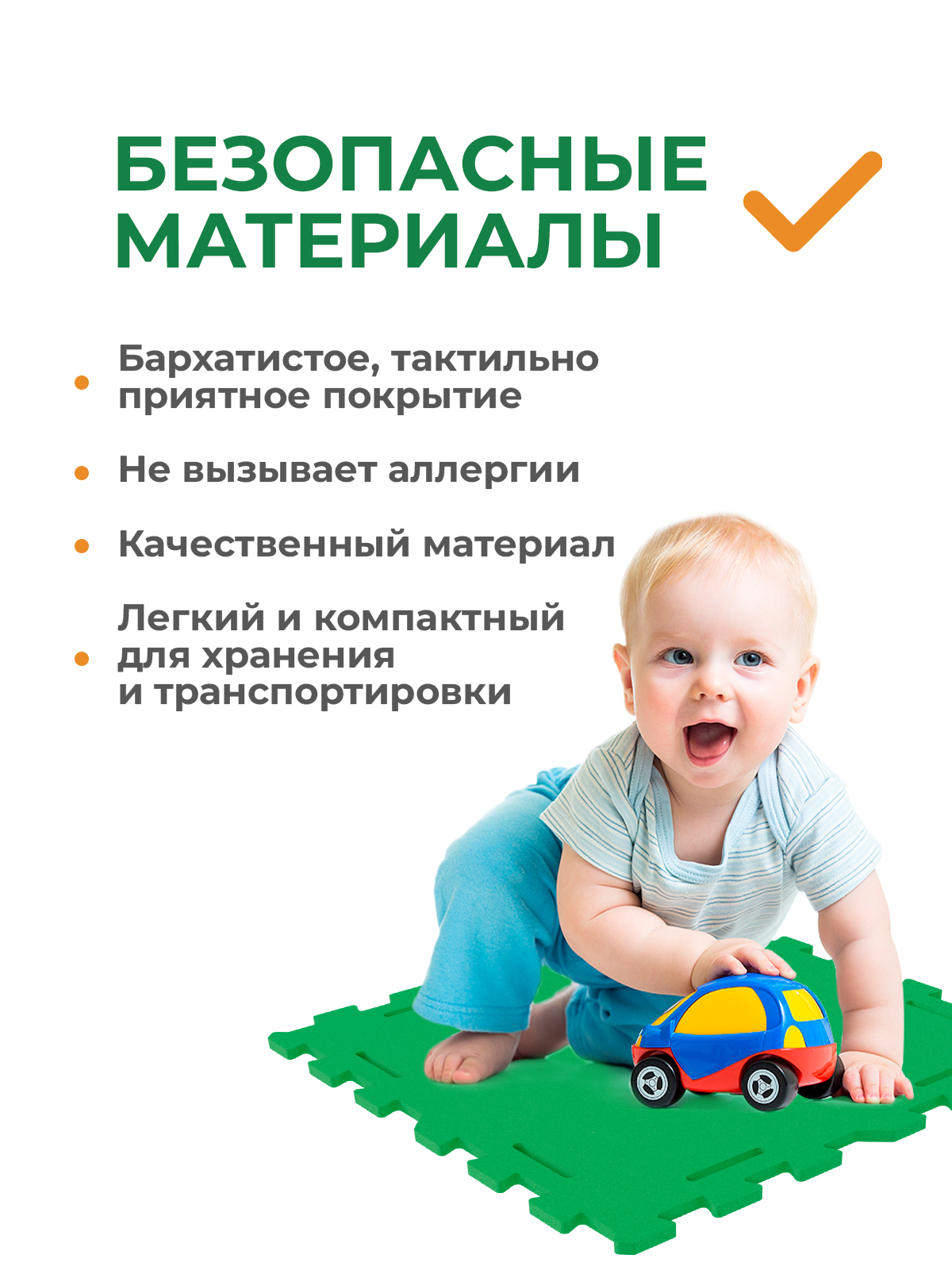 Безопасный материал изделия: не токсичный, мягкий (смягчает падение), износостойкий, непромокаемый.