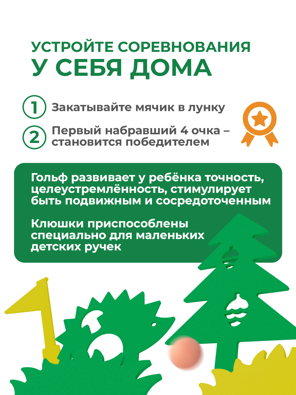 Гольф игра "Лес" — это отличное развлечение для детей, которое можно организовать в помещении.