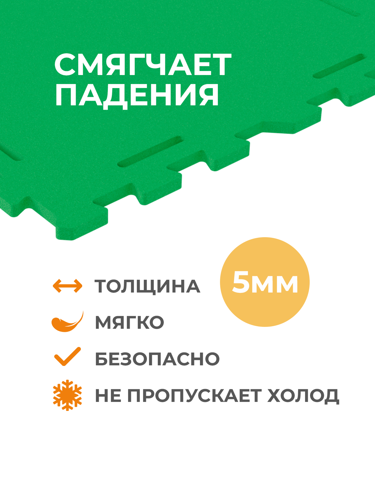 Безопасный материал изделия: не токсичный, мягкий (смягчает падение), износостойкий, непромокаемый.