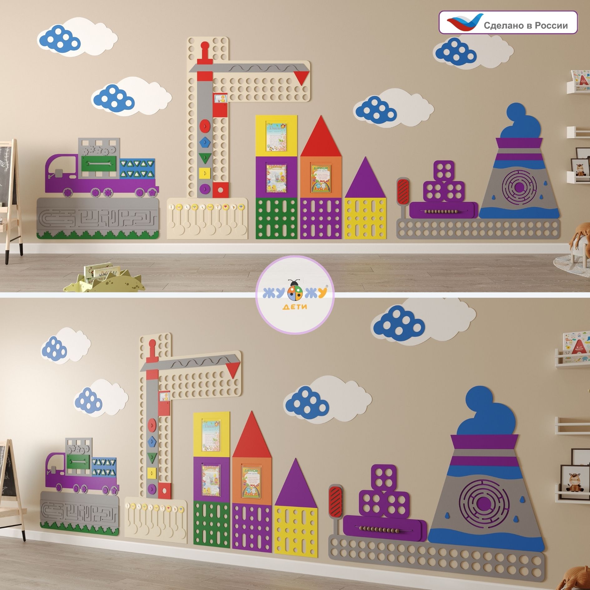 Уникальная настенная панель идеально подходит для зонирования пространства и оформления групп в ДОО и других учебных заведениях. Она развивает мелкую моторику, логическое мышление и инженерный подход у детей. Панель включает в себя съемные элементы, пальчиковый лабиринт, скрытые элементы. Интерактивные компоненты помогают развивать логику и пространственное мышление.
