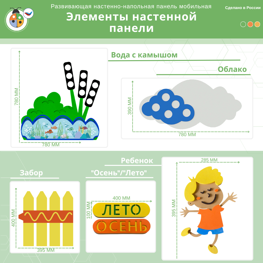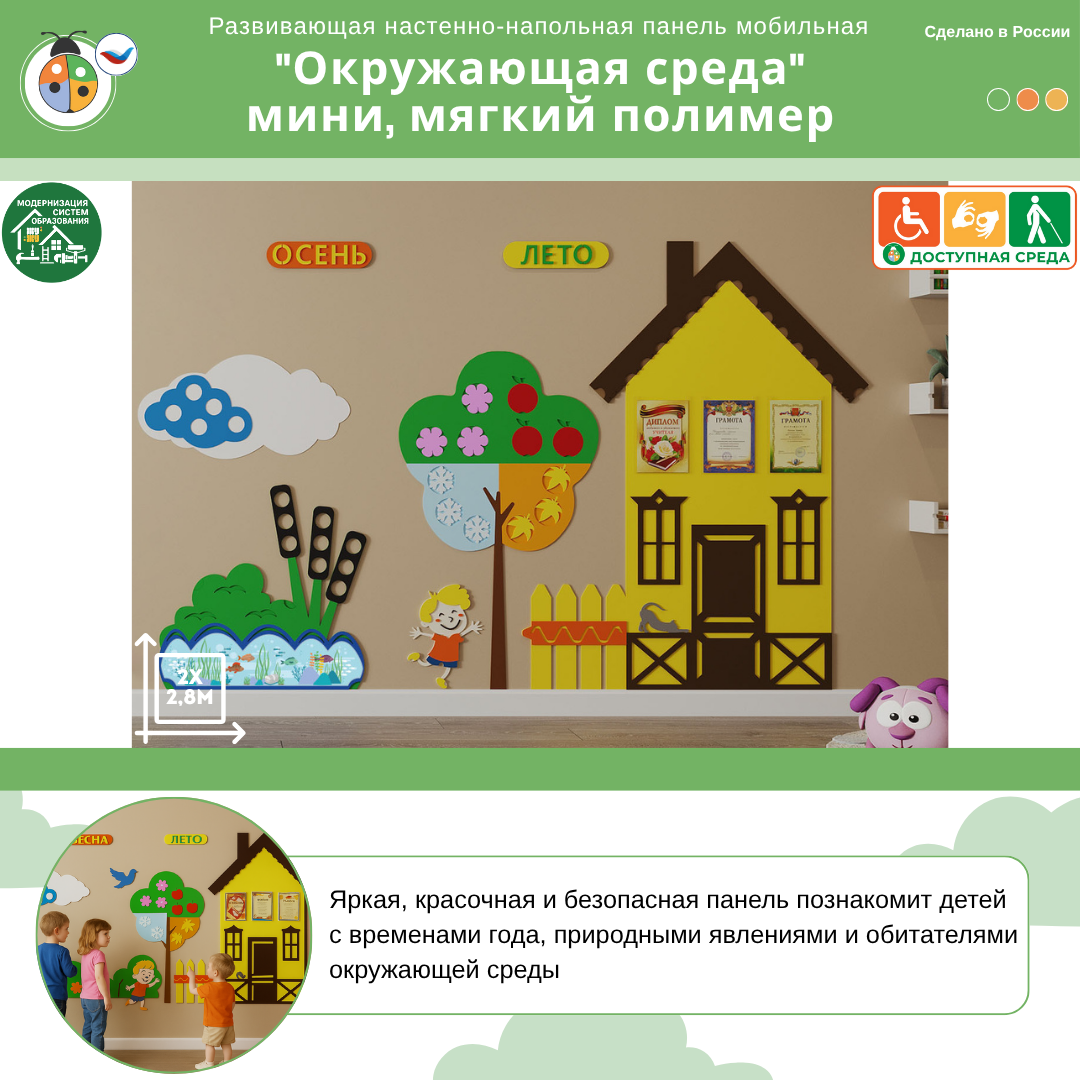 Приобретая развивающую настенно-напольную панель мобильную "Окружающая среда" мини, комплект, вы получаете: