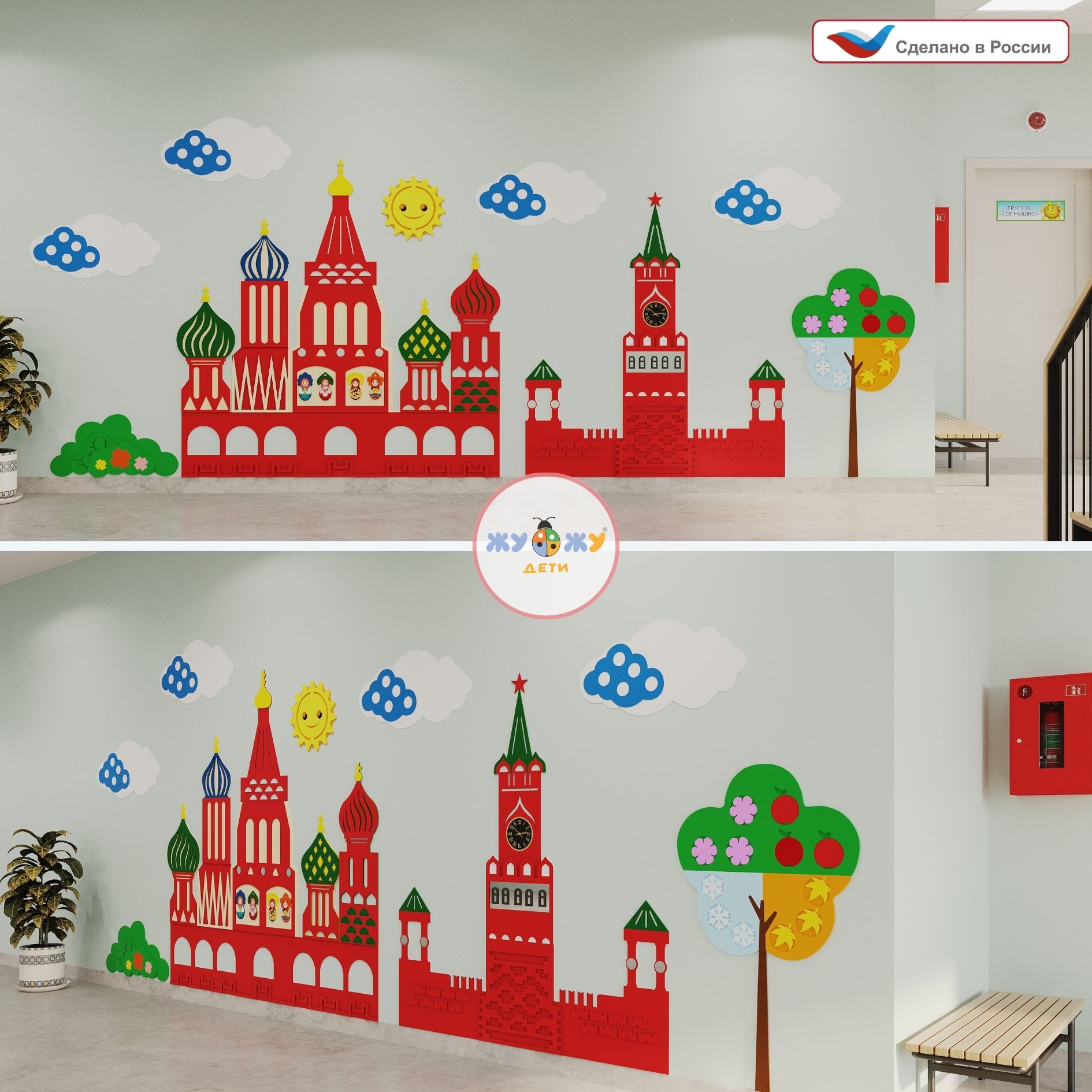 Панель выполнена в патриотической тематике и включает в себя съемные элементы, магнитные детали и пальчиковый лабиринт. Яркие цвета и разнообразие текстур привлекают внимание ребенка и способствуют познавательному развитию.