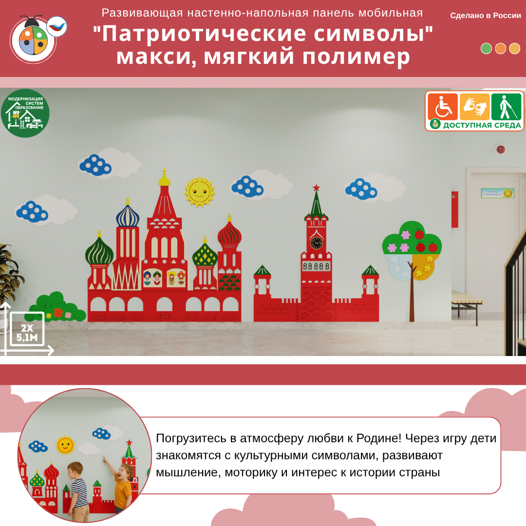 Приобретая развивающую настенно-напольную панель мобильную "Патриотические символы" макси, комплект, вы получаете:
