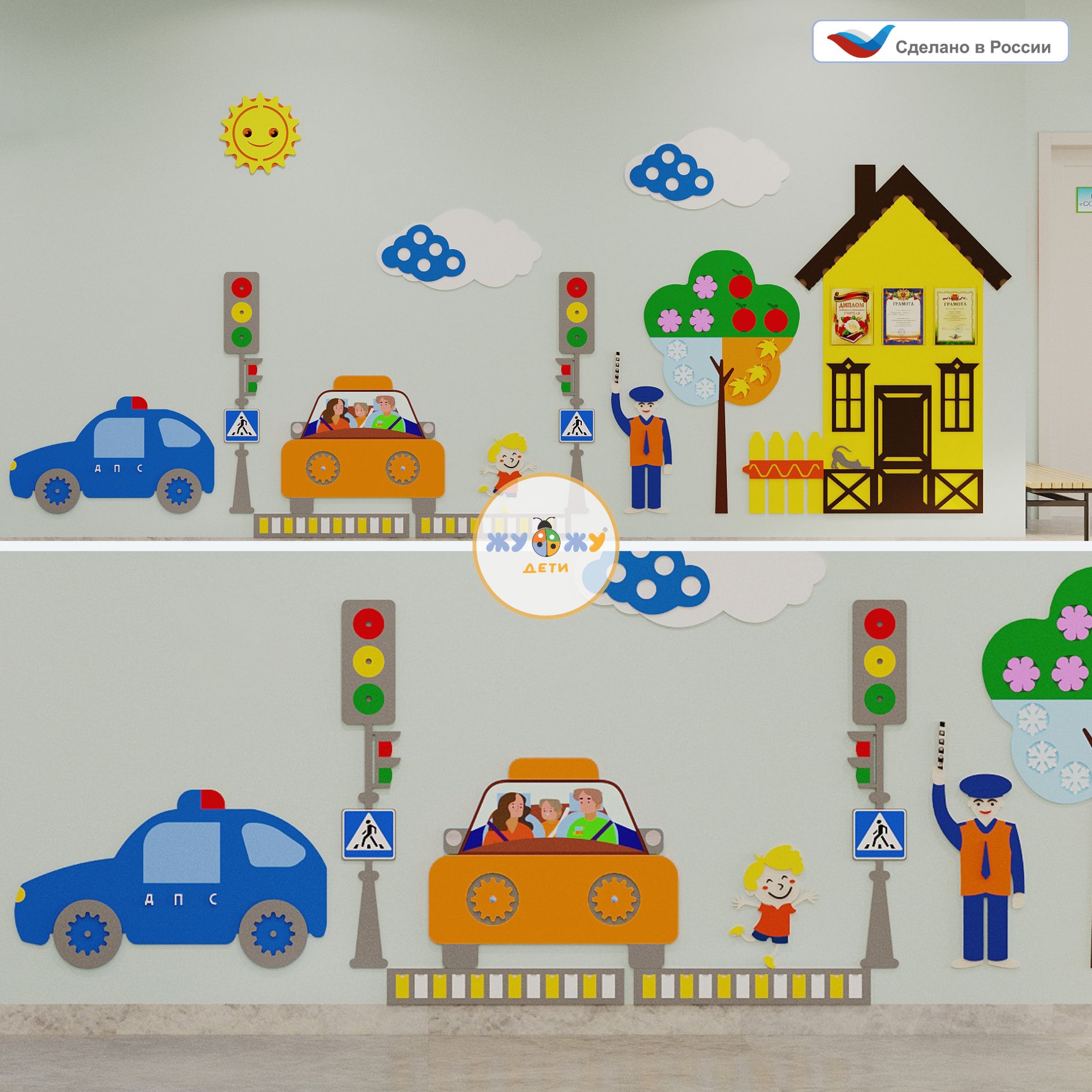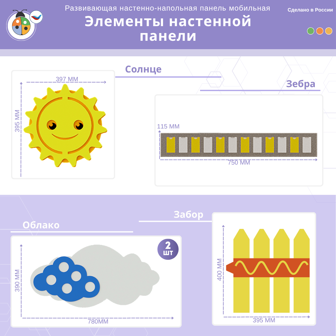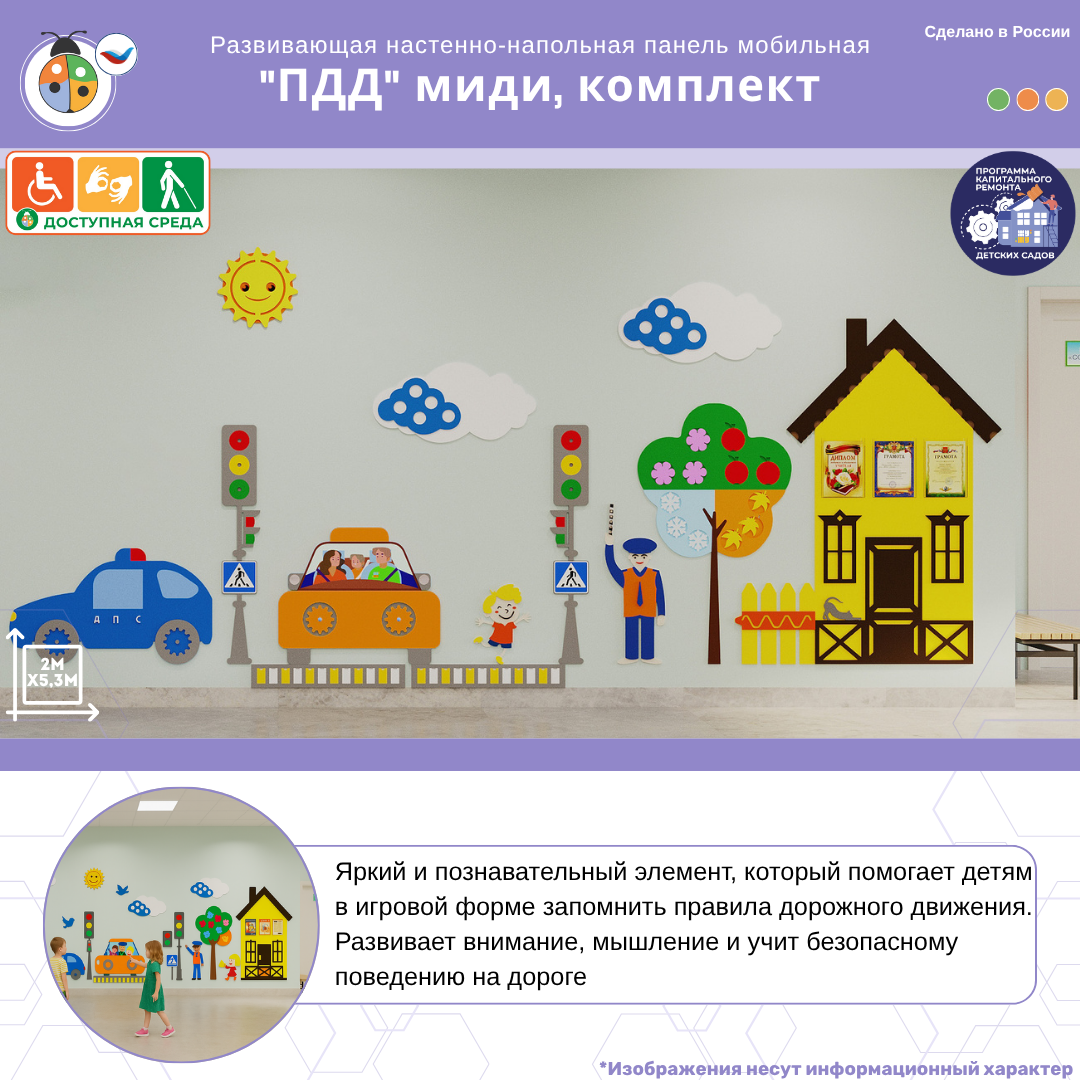 Приобретая развивающую настенно-напольную панель мобильная "ПДД" миди, комплект, вы получаете: