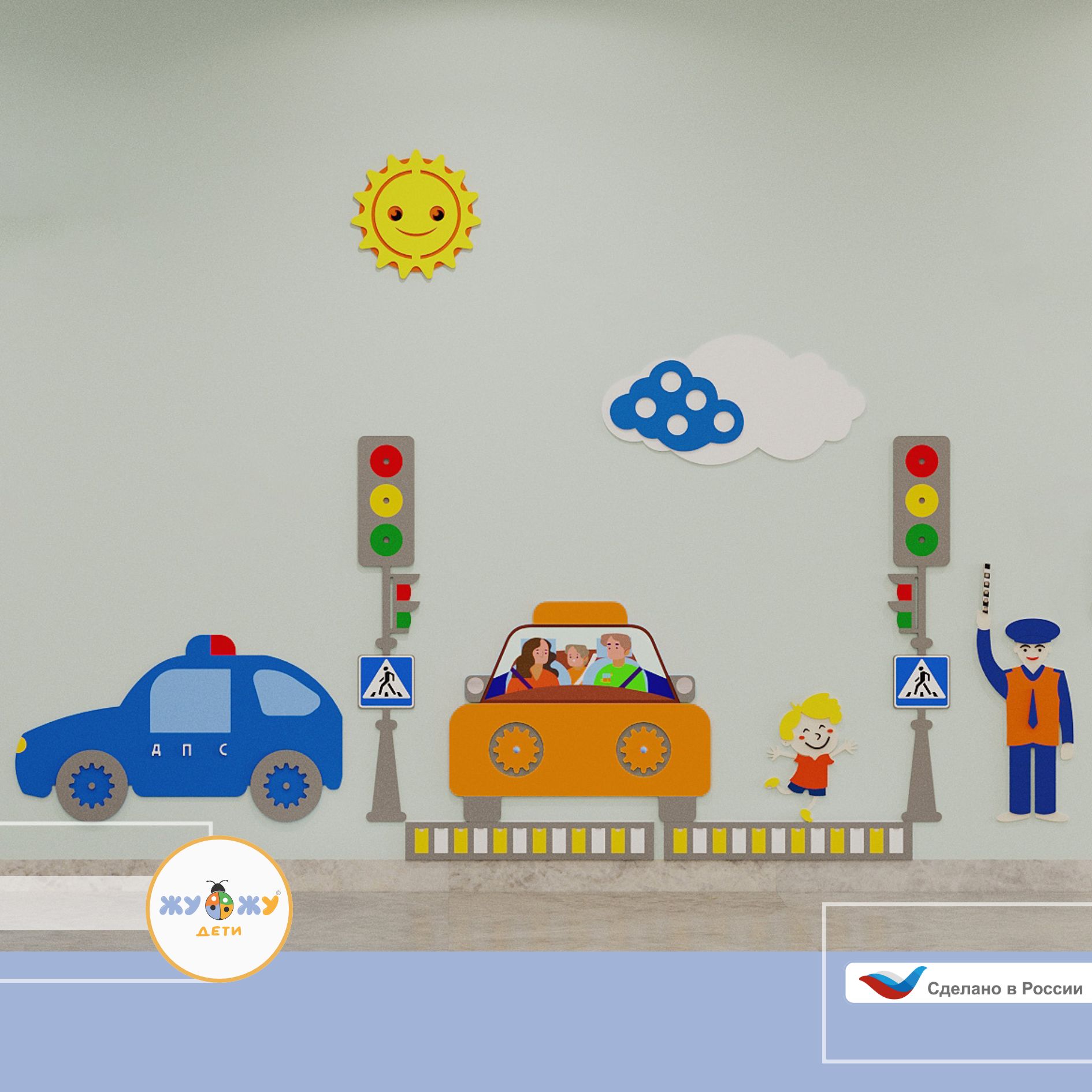 Приобретая развивающую настенно-напольная панель мобильная "ПДД" мини, комплект, вы получаете: