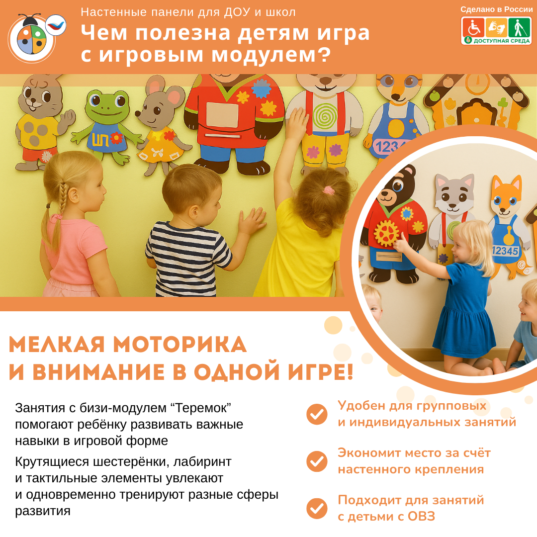 Удобство размещения. Настенное крепление экономит пространство и позволяет закрепить игрушку на удобной для ребёнка высоте, превращая стену в развивающую зону.