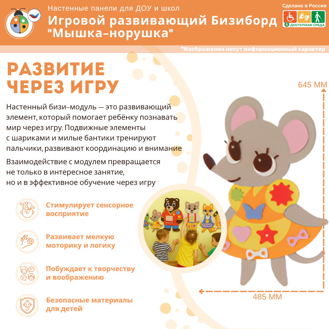Игровой развивающий Бизиборд "Мышка-норушка"