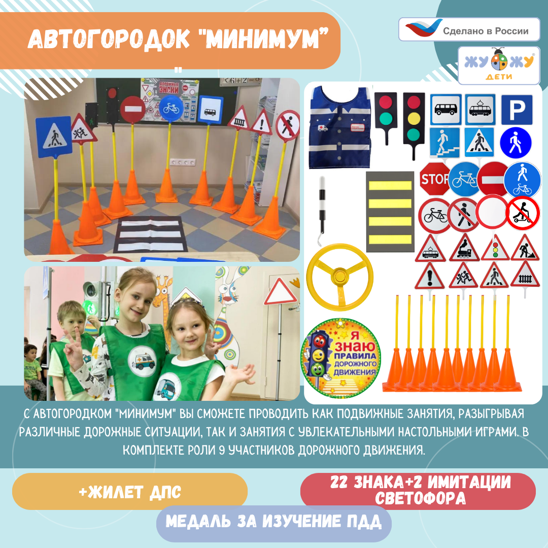 С автогородком "Минимум" вы сможете проводить как подвижные занятия, разыгрывая различные дорожные ситуации с участниками дорожного движения, так и занятия с увлекательными настольными играми.