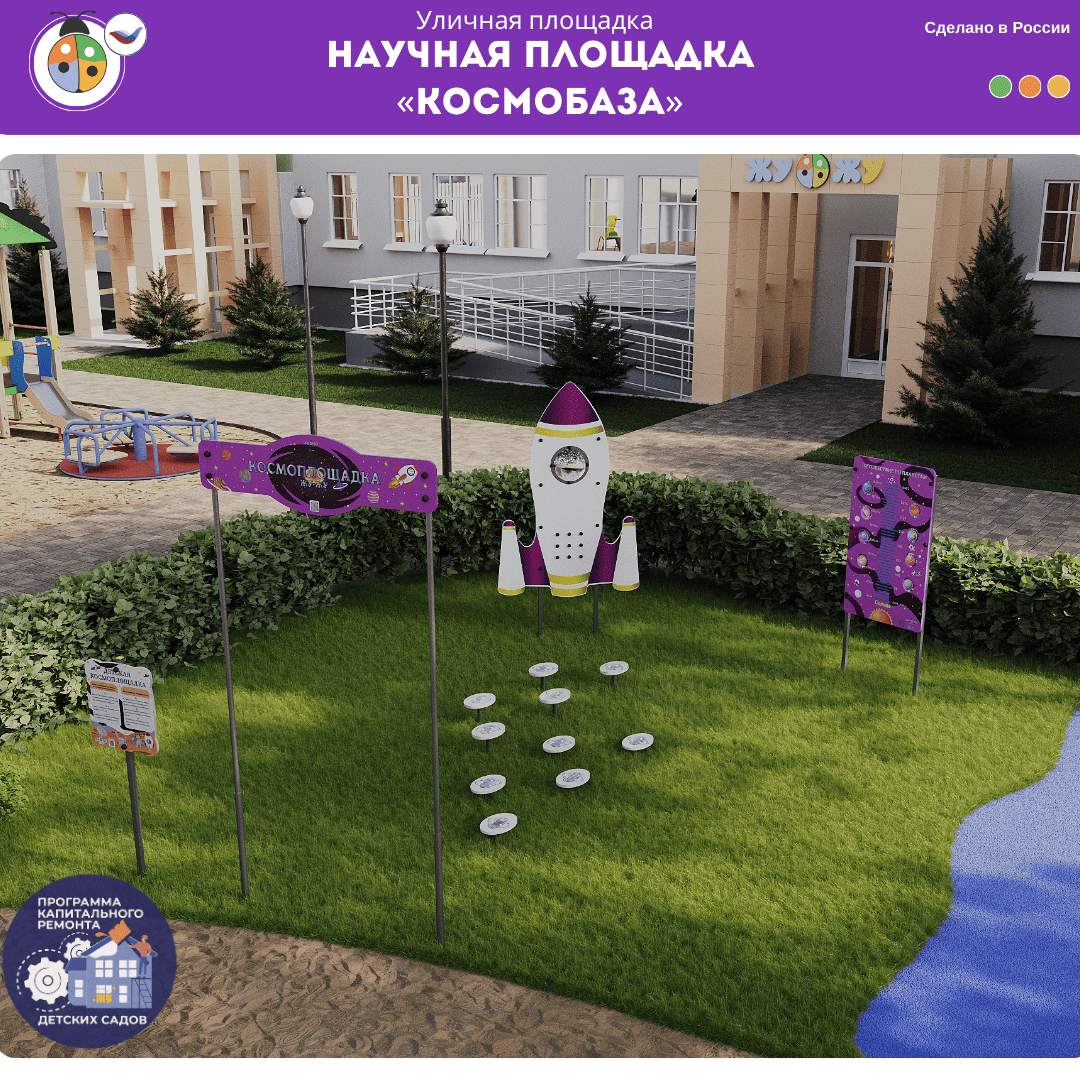Космоплощадка ЖУ-ЖУ - это уличная площадка, которая соответствует ФГОС и стандартам ФОП ДО, формирует образовательную среду в учебном учреждении, а ее яркий дизайн украшает любую местность!