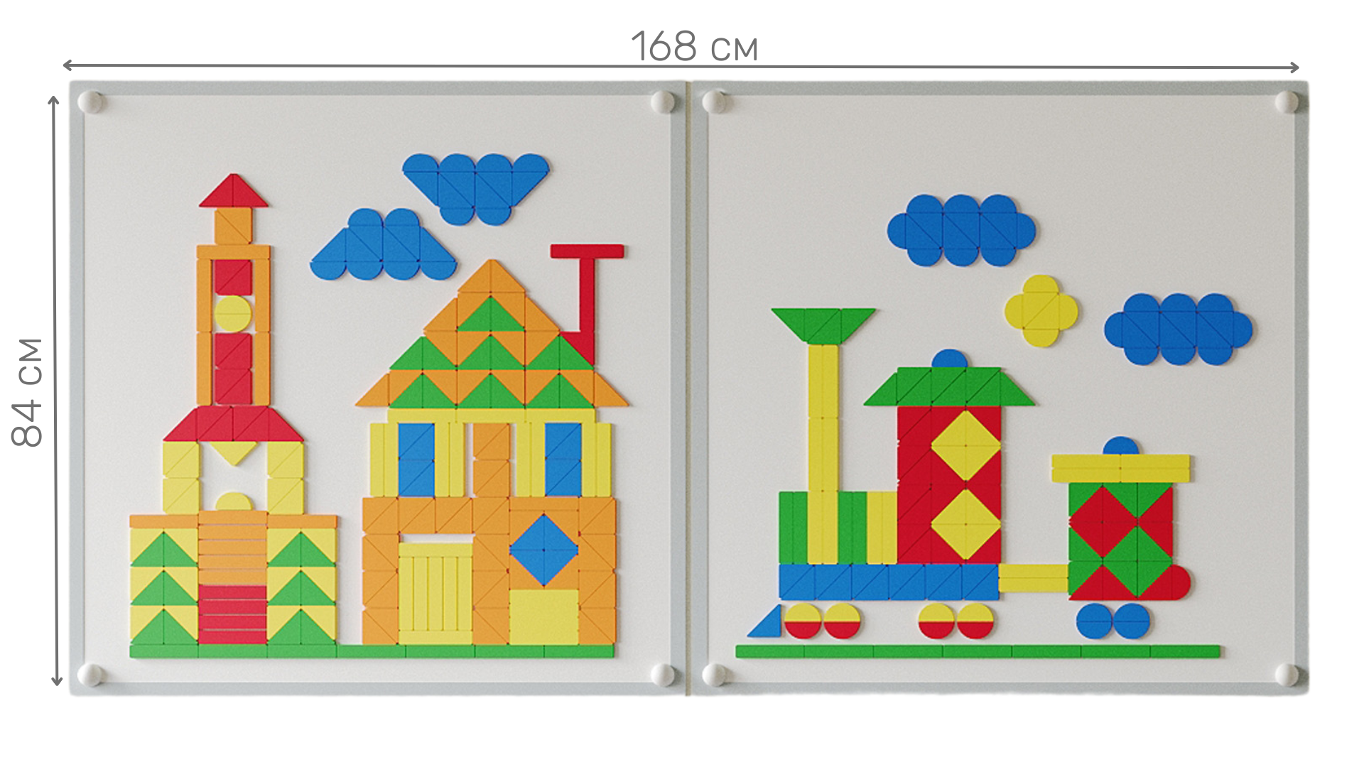 Панель (Высота х Ширина): 84х168 см. Размер 1 магнитной доски 84х84 см.