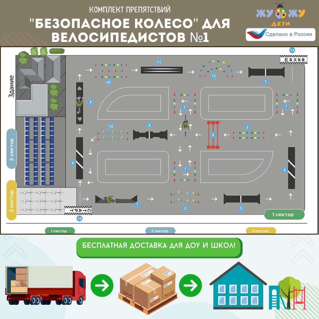 Приобретая комплект препятствий "Безопасное колесо" для велосипедистов №1(ЖУ-ЖУ-БК5000), вы получаете: