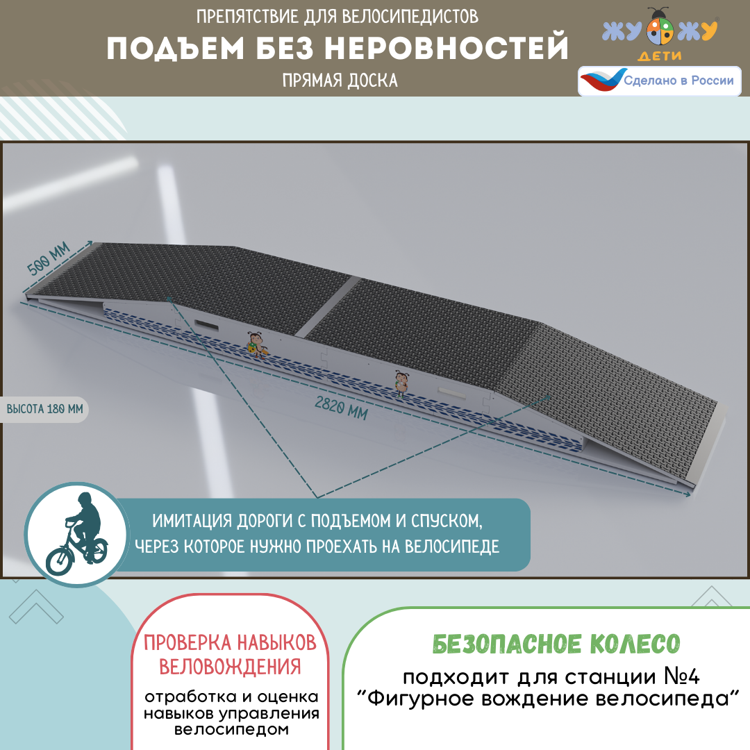 Препятствие предназначено для отработки навыка вождения велосипеда по дороге с подъемом и спуском без неровностей.
