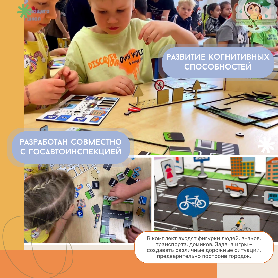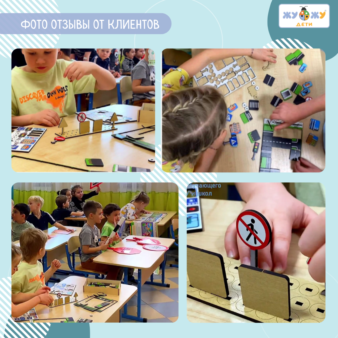 Игра развивает воображение, моторику рук, память, умение строить причинно-следственные связи! В комплект входят фигурки людей, знаков, транспорта, домиков. Задача игры – создавать различные дорожные ситуации, предварительно построив городок.