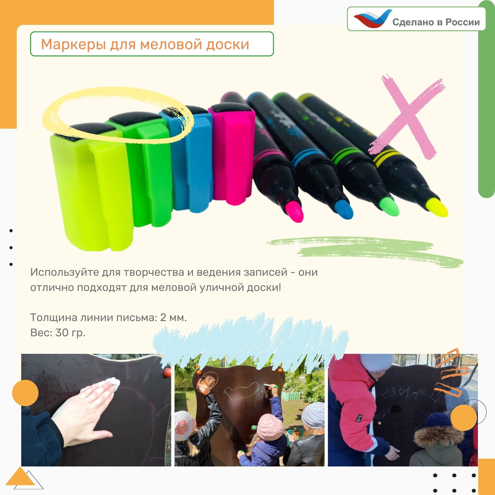 Меловые маркеры отлично подходят для рисования на меловой доске и на первом слое стола-пазла Карта Родины.