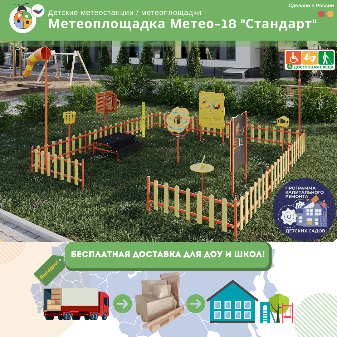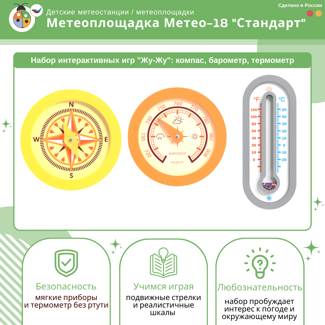 Метеоплощадка ЖУ-ЖУ (метеостанция) - это уличная площадка, которая соответствует ФГОС и стандартам ФОП ДО, формирует образовательную среду в учебном учреждении, а ее яркий дизайн украшает любую местность!