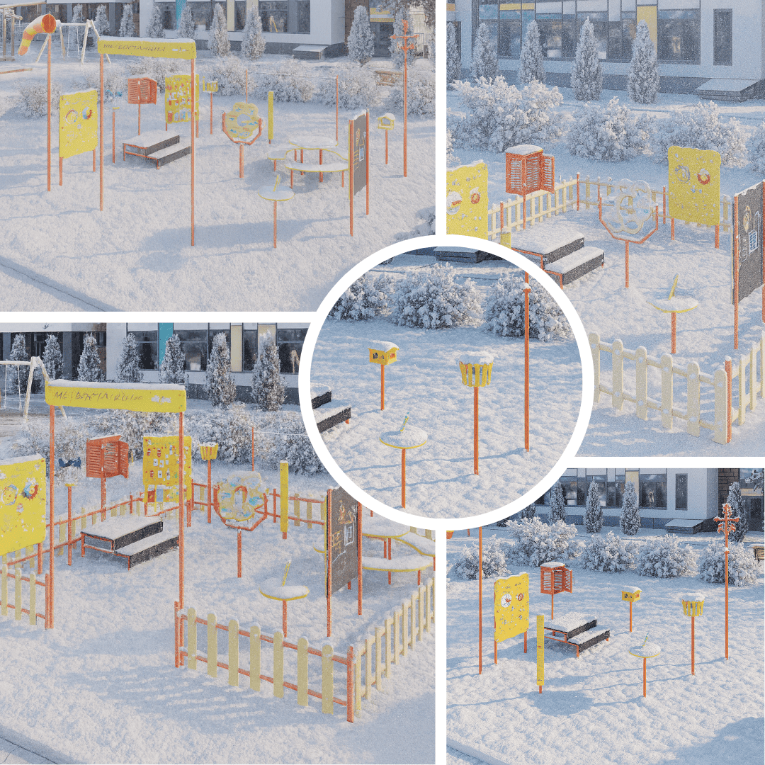 4. Кормушка - познакомит детей с миром орнитологии, научит заботиться об обитателях природы. Яркая и просторная кормушка привлечет внимание птиц! Высота кормушки оптимальна для среднего роста ребенка. На кормушке установлены заглушки, отсутствуют острые углы для предотвращения случайного травматизма.
