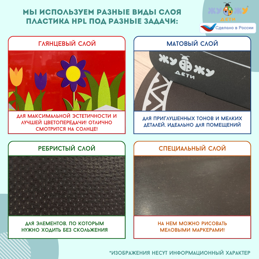 Материал: специализированный безопасный полимер толщиной слоя 10 мм.