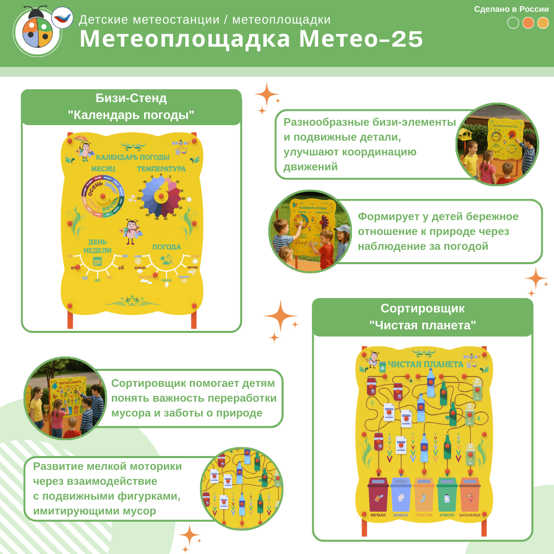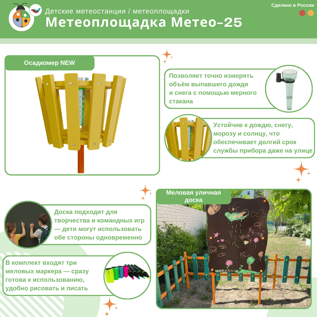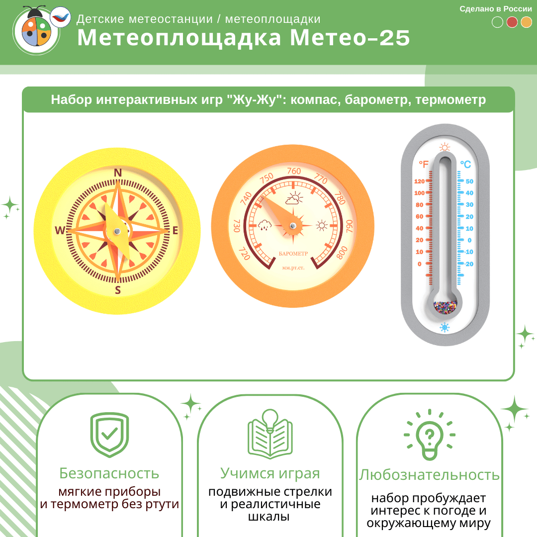 Метеоплощадка ЖУ-ЖУ (метеостанция) - это уличная площадка, которая соответствует ФГОС и стандартам ФОП ДО, формирует образовательную среду в учебном учреждении, а ее яркий дизайн украшает любую местность!