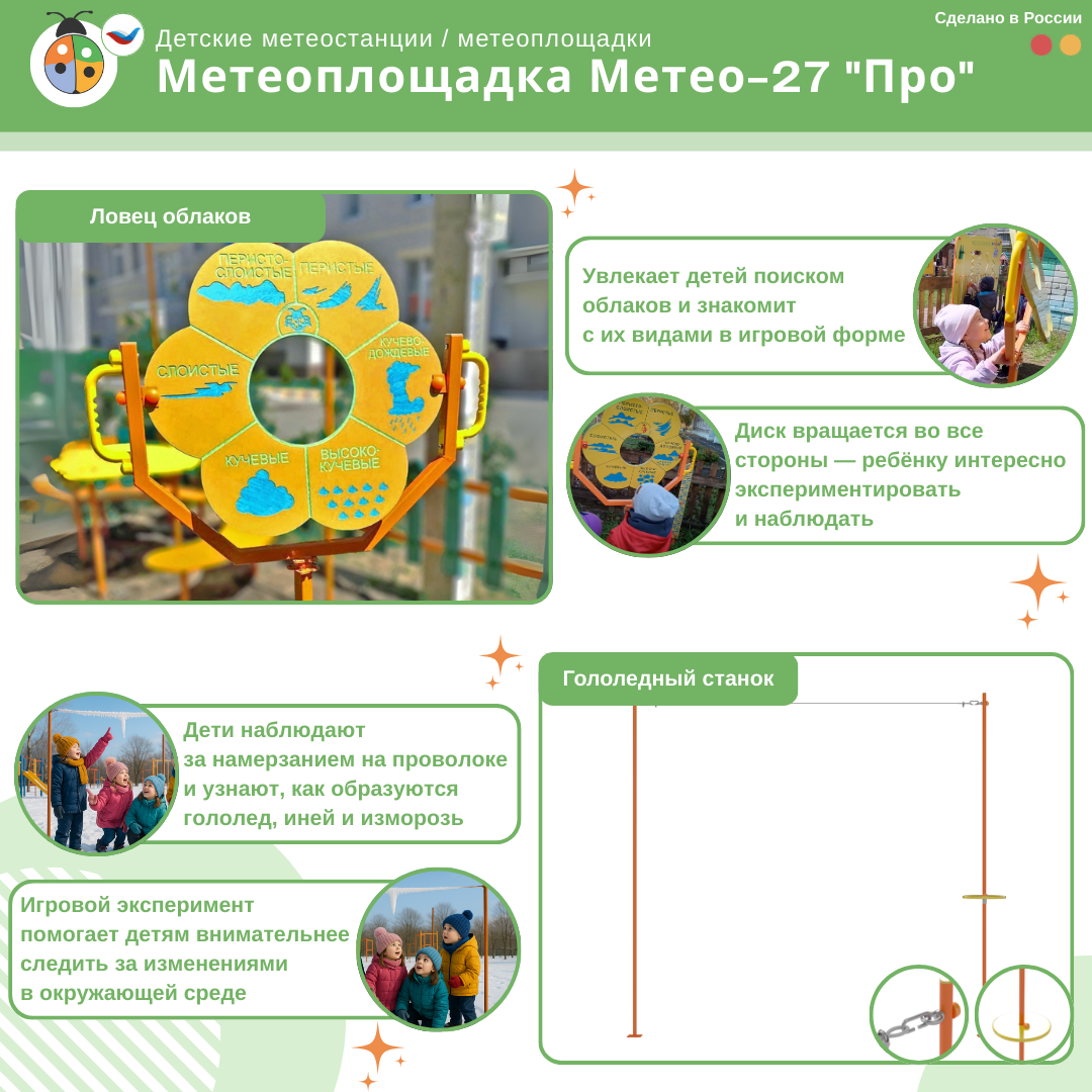 Метеоплощадка ЖУ-ЖУ (метеостанция) - это уличная площадка, которая соответствует ФГОС и стандартам ФОП ДО, формирует образовательную среду в учебном учреждении, а ее яркий дизайн украшает любую местность!