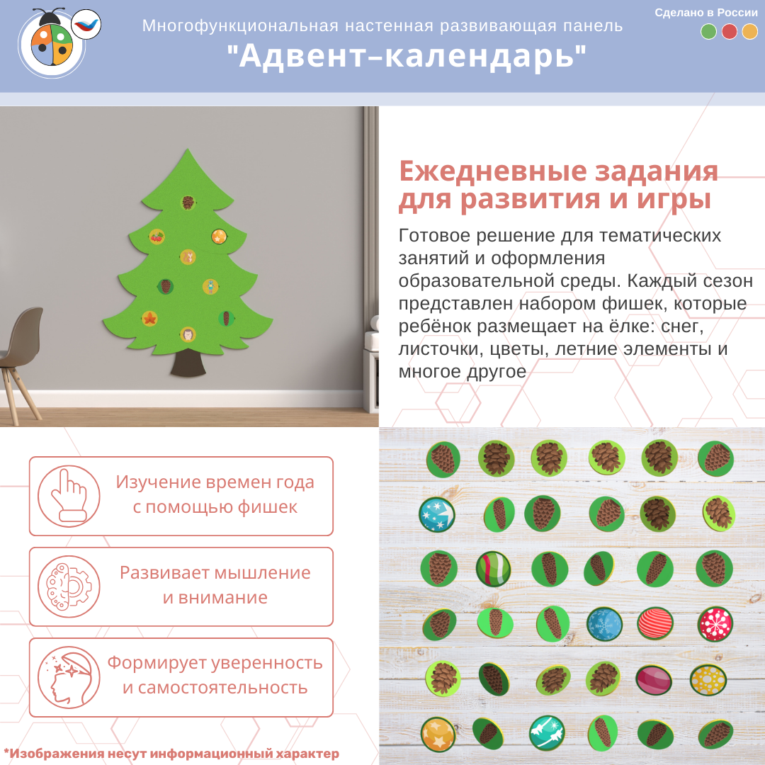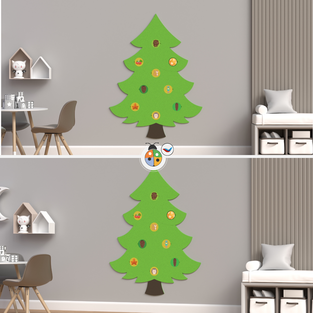 Развивающая панель "Времена года на ёлке" — интерактивное настенное пространство, которое помогает детям изучать природу через игру: менять сезоны, размещать фишки и превращать обычное занятие в увлекательное путешествие по четырём временам года.
