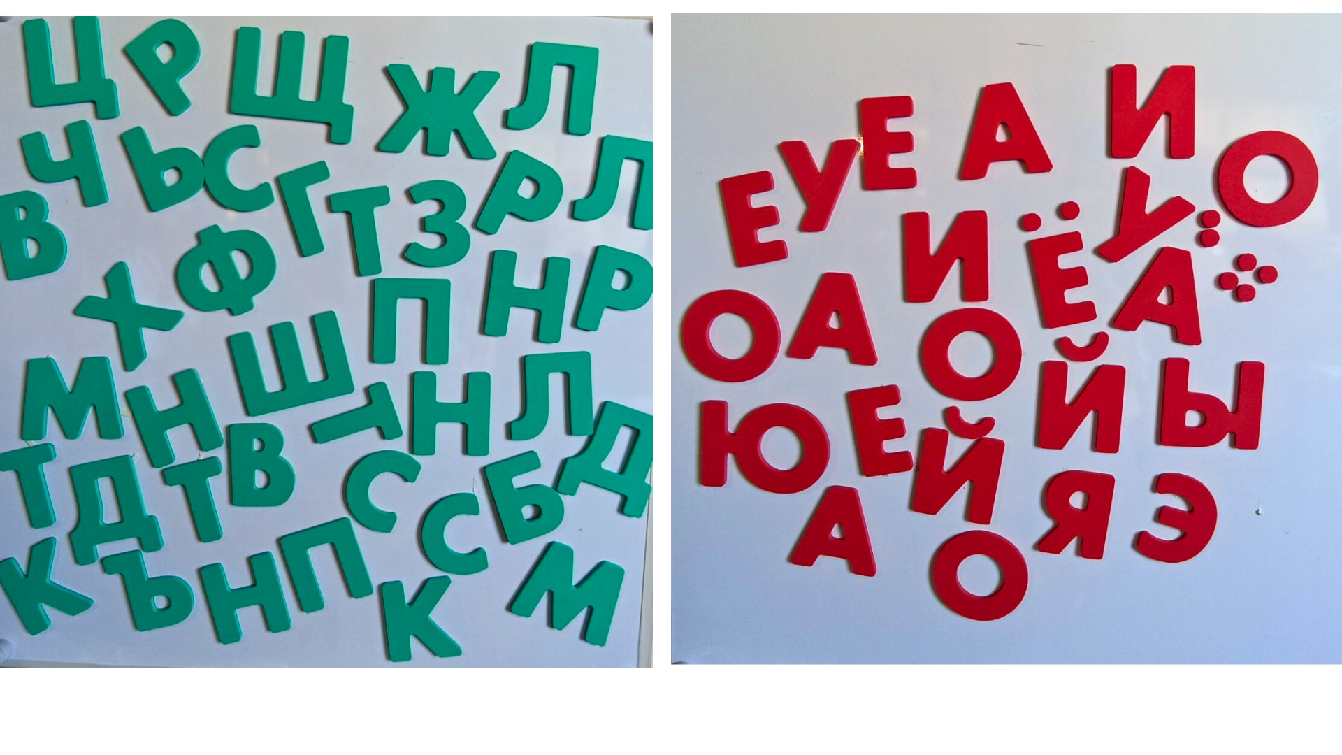 - фиолетовые гласные буквы: А, О по 4 шт.;