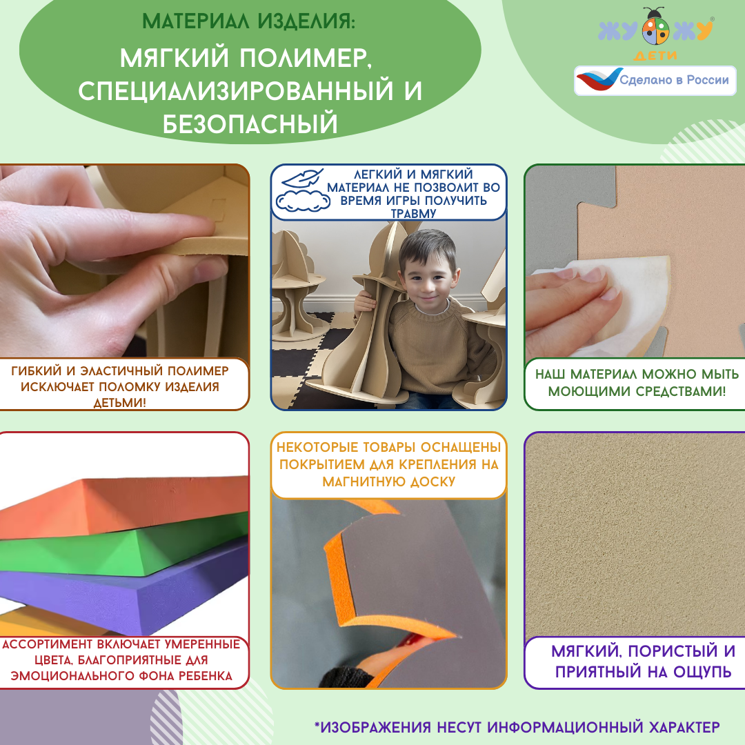 Настенные элементы (панели, мозаику, логические игры) мы доставляем бесплатно до адреса Покупателя по всей РФ при сумме договора от 50 000 рублей. При доставке до адреса Покупателя комплектов стоимостью ниже 50 000 рублей включаем стоимость доставки в сумму договора.