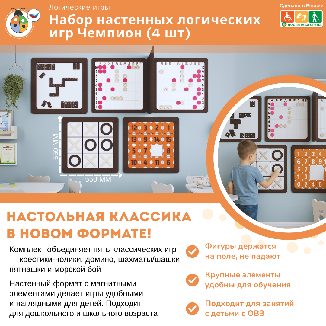 Приобретая набор настенных логических игр Чемпион (4 шт) (ЖУ-ЖУ-ЛО1000), вы получаете: