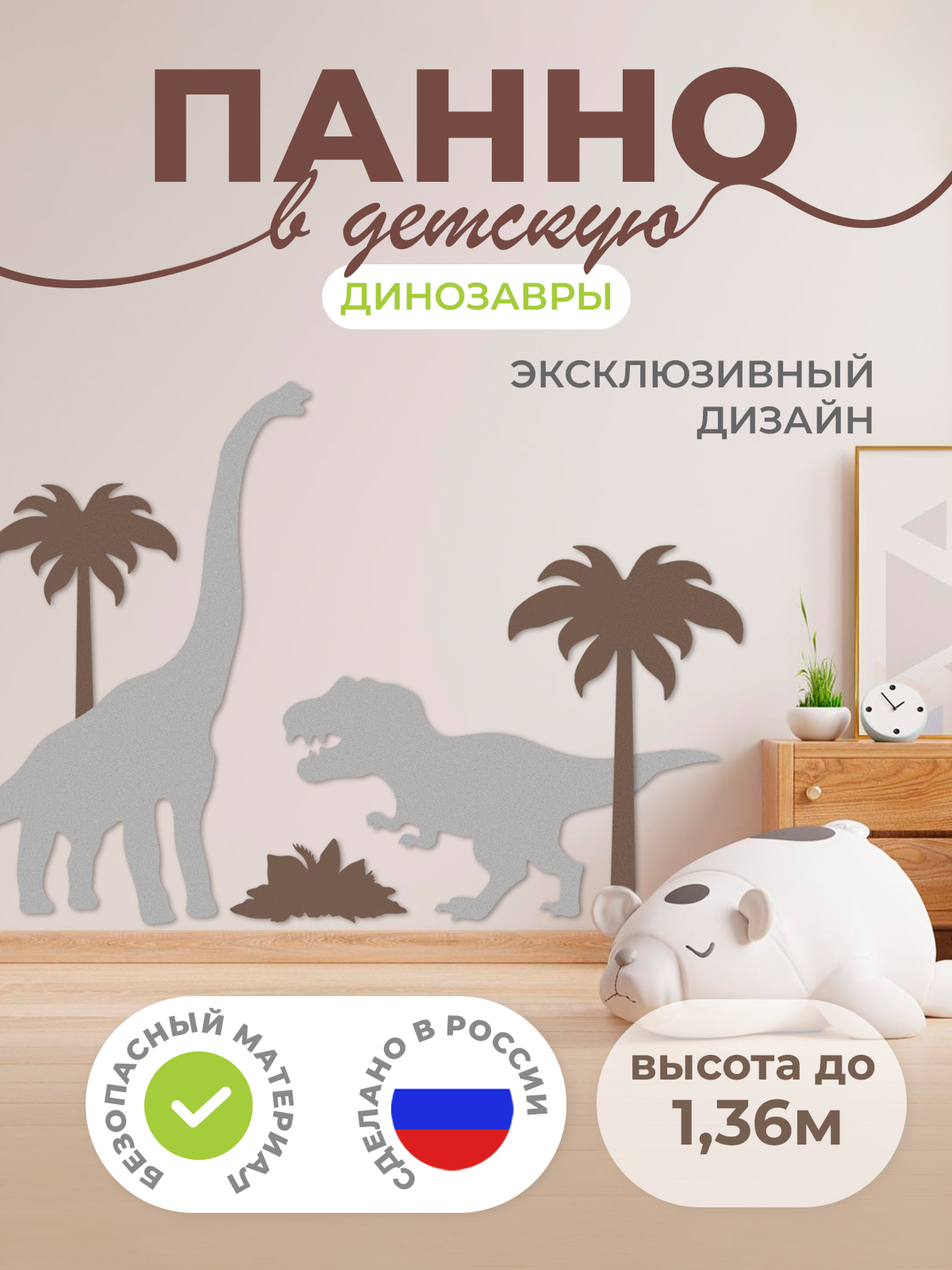 - Развивайте социальные навыки детей и воображение! Используйте панель как часть игровой зоны, где дети могут разыгрывать сцены из жизни динозавров, развивая воображение и социальные навыки.