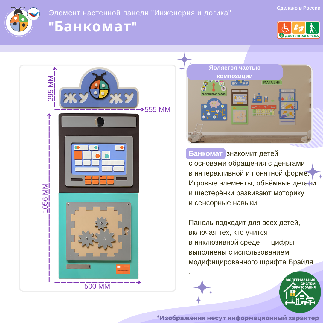 Настенная развивающая панель из мягкого полимера "Финансовая грамотность", банкомат