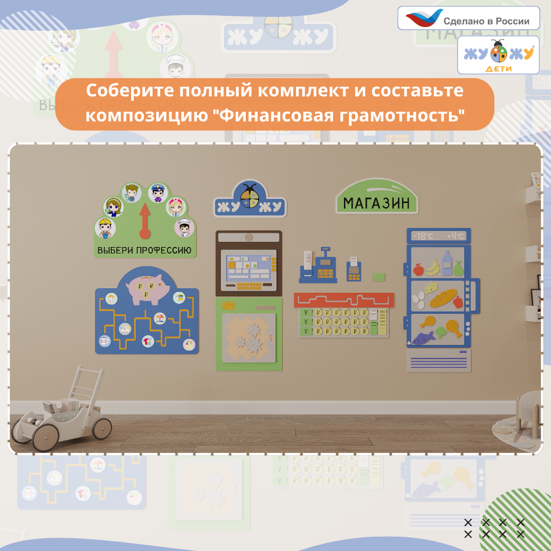 Настенная развивающая панель из мягкого полимера "Финансовая грамотность", магазин