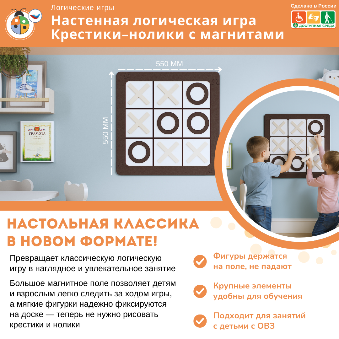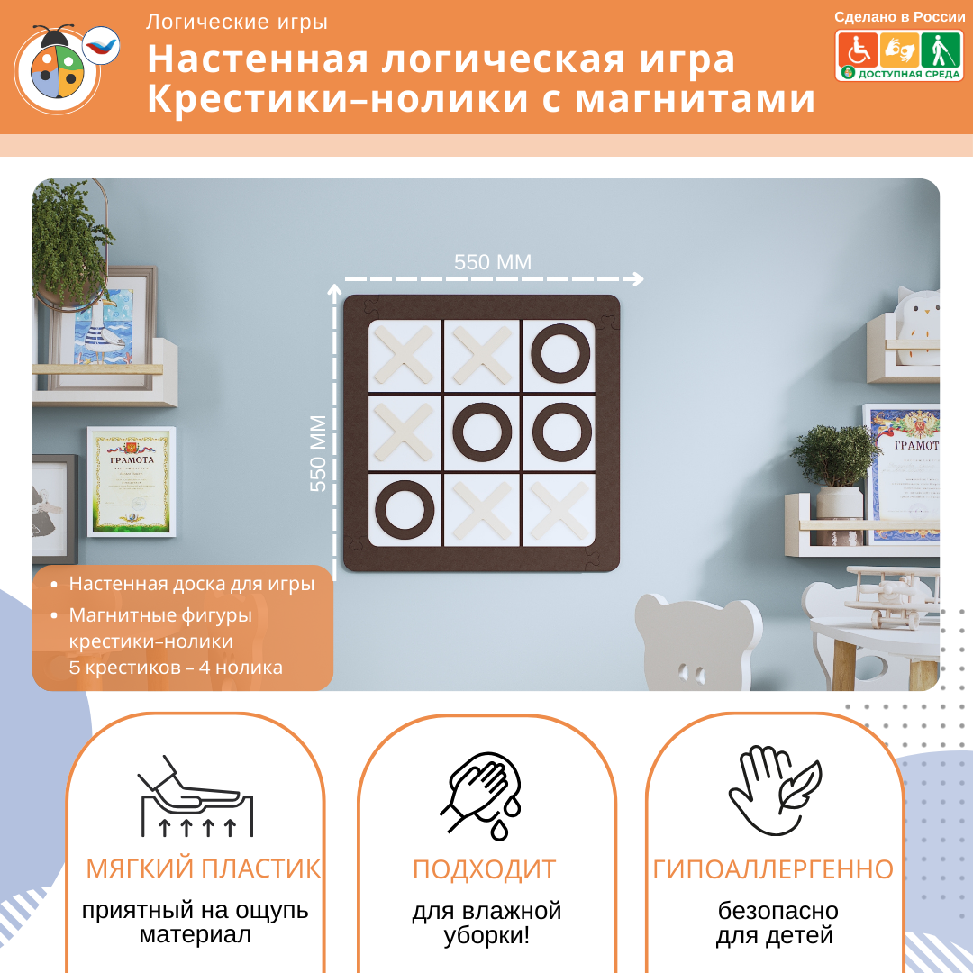 Настенная логическая игра Крестики-нолики с магнитами, мягкий полимер
