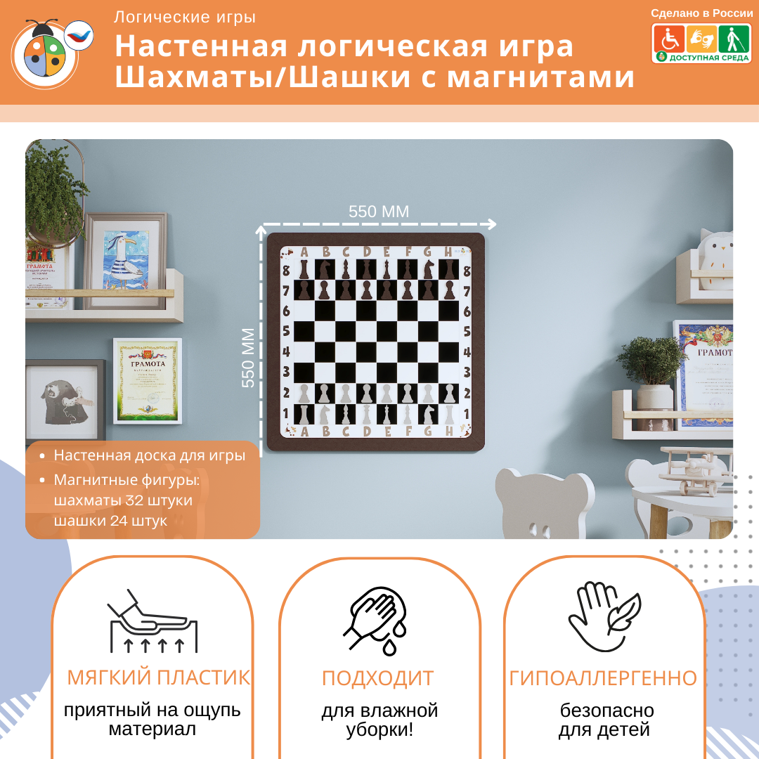 Настенная логическая игра Шахматы/Шашки с магнитами, мягкий полимер