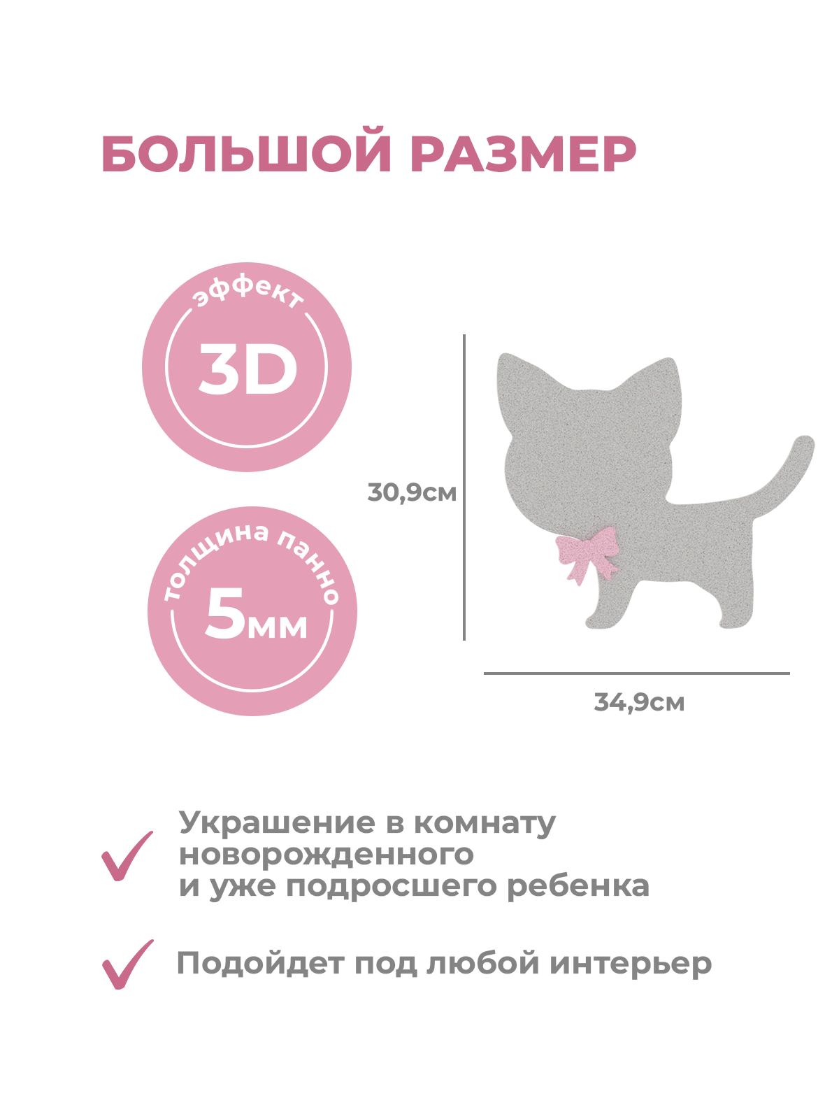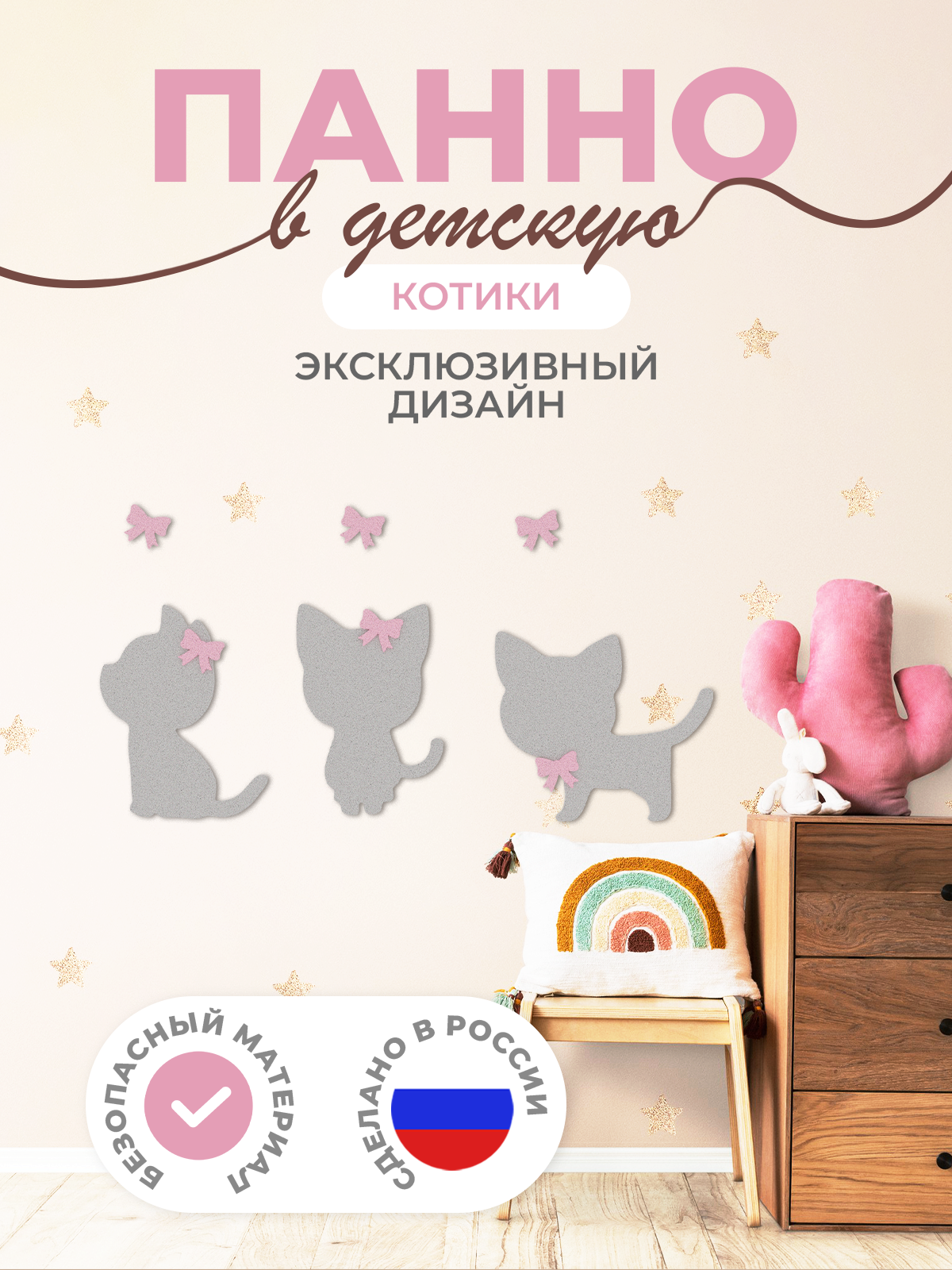 Настенная панель «Котики» в стильном дуэте серого и розового цветов создает современный и уютный акцент для детской или игровой комнаты, изображая очаровательных котиков в минималистичном дизайне.