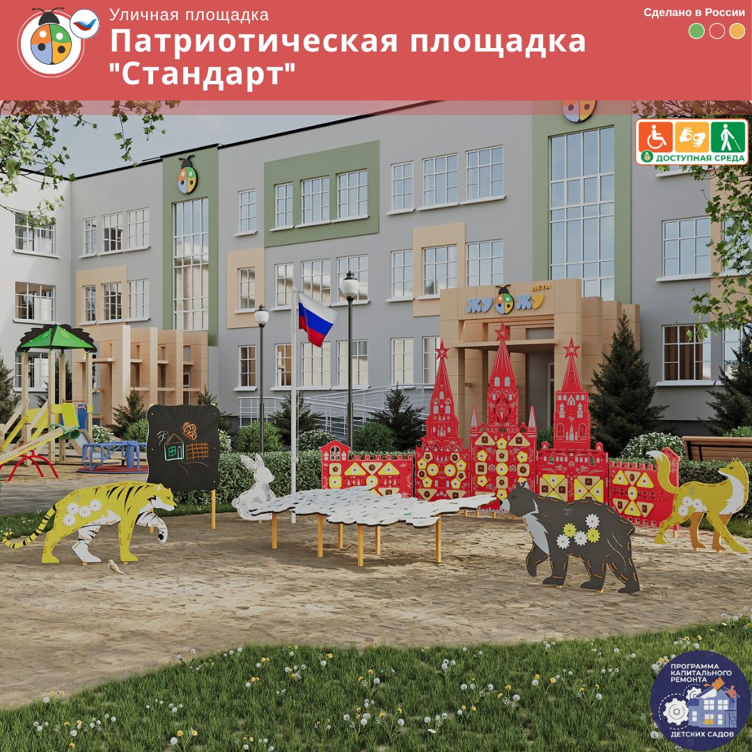 Патриотическая площадка ЖУ-ЖУ - это уличная площадка, формирует образовательную среду в учебном учреждении, а ее яркий дизайн украшает любую местность! Площадка позволяет проводить занятия по патриотическому воспитанию в игровом формате.Приобретая товар в Жу-Жу, вы получаете: